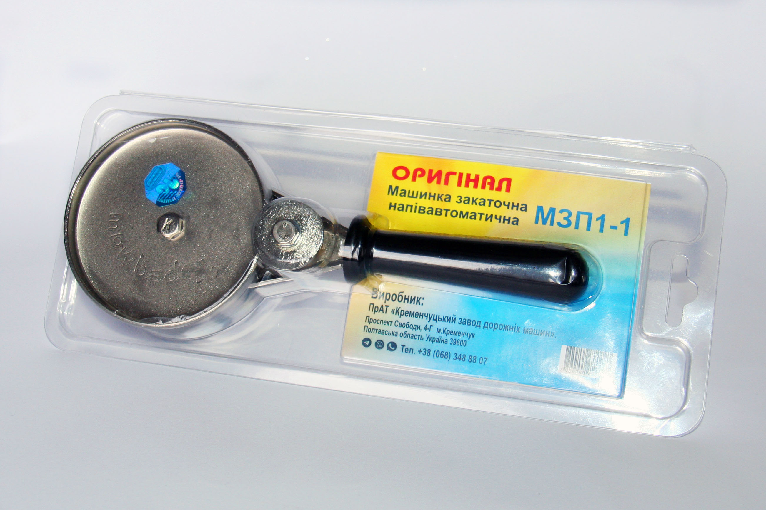 ПрАТ Кременчуцький завод дорожніх машин (КРЕДМАШ) приєднався як виробник та продавець до національної програми «Зроблено в Україні». Зараз ми можемо запропонувати покупцеві наш продукт №1 машинку закаточну напівавтоматичну МЗП1-1 в зручному блістерному пакуванні, завдяки якому Ви зможете оглянути, перевірити його оригінальність.
