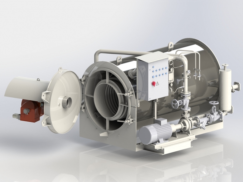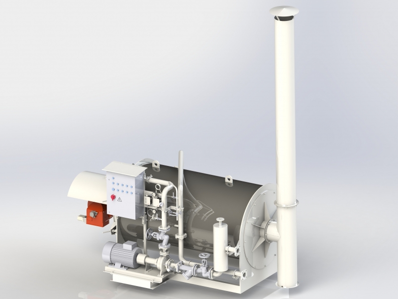 Теплогенератор КДМ2067 80.50.000 призначений для нагрівання термального масла до робочої температури і подачі його до обладнання, що потребує обігріву. Наприклад, бітумні цистерни, бітумопроводи, бітумні насоси, крани та інше обладнання. Змійовик має дві спіралі виготовлені з безшовної труби між якими гарячі димові гази проходять три рази, що забезпечує максимально ефективне використання поверхні теплообмінника. Теплогенератор може комплектуватися пальником, що працює на природному чи зрідженому газі, дизельному пальному чи бути комбінованим. Автоматичне управління роботою котла забезпечує безперервну його роботу.